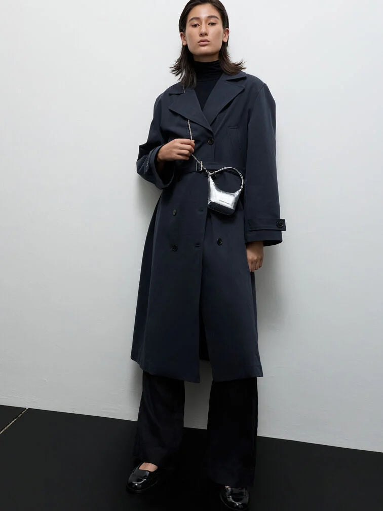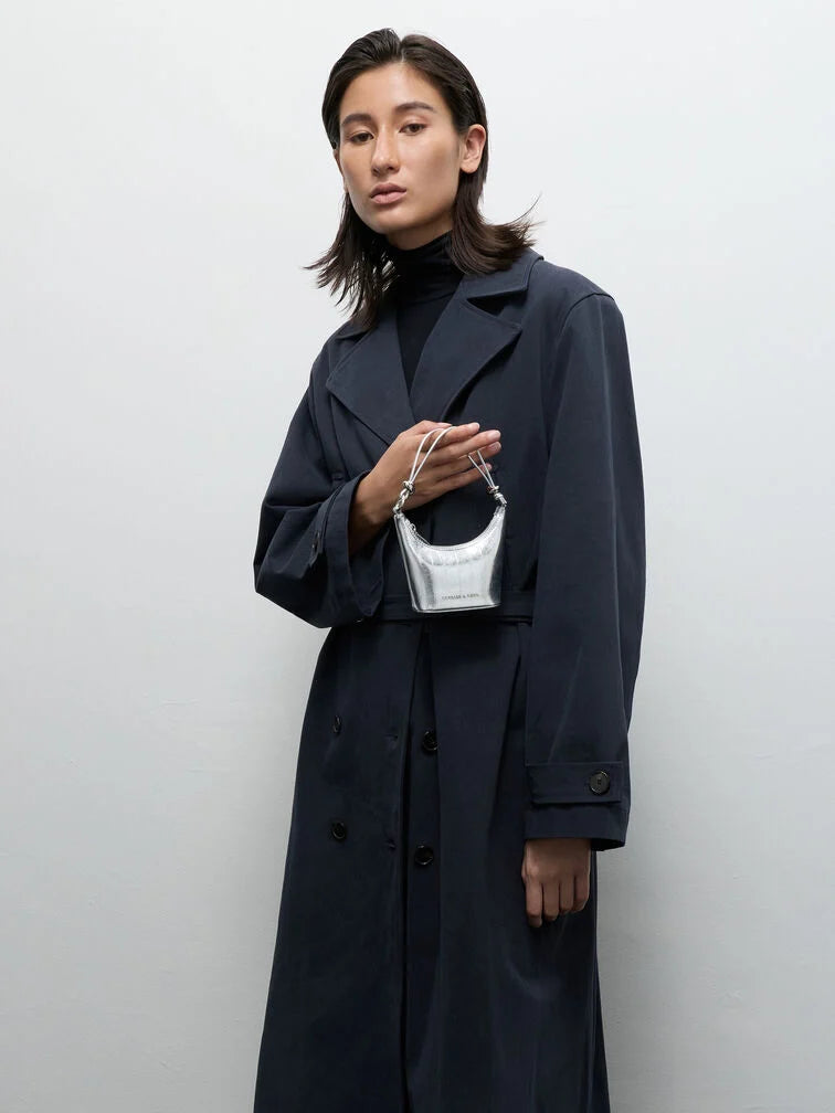BOXED Charles and Keith Micro Augustine Eel-Effect Chain-Handle Bag - Silver