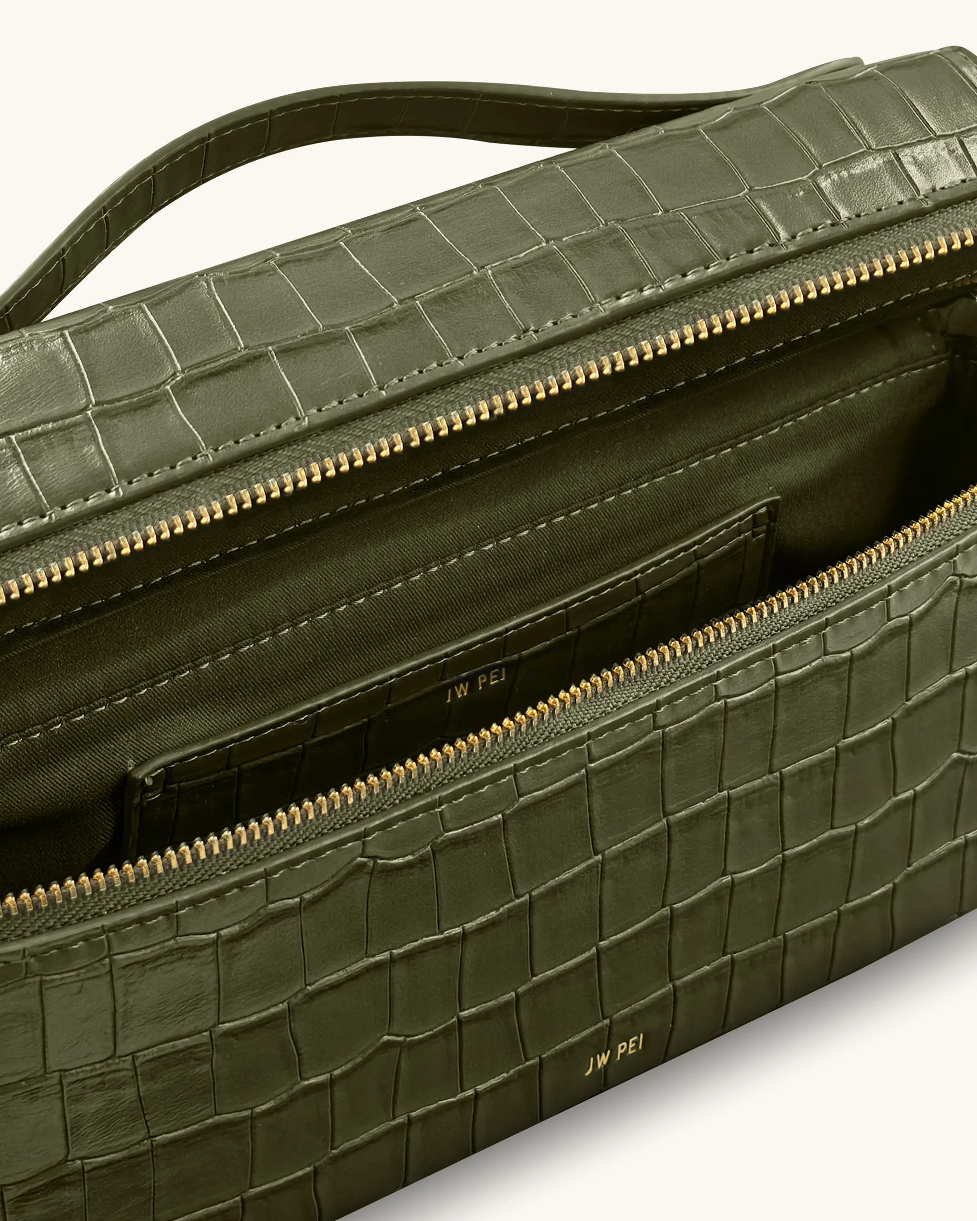 PREORDER JW PEI Thea Croc-Embossed Top Handle Bag - Olive Green